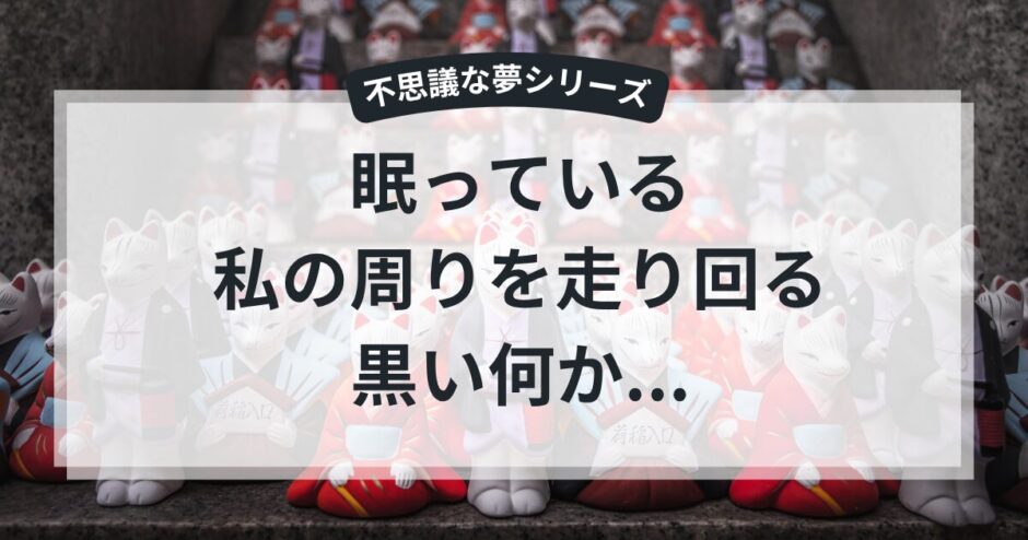 寝ているんですが、なぜか夢の中でははっきり起きていて自分が寝ているのがわかるんですが、その自分の周りを黒い人影のような小さな物体が、私の布団の周りをドタドタドターっと回っているんです。